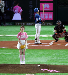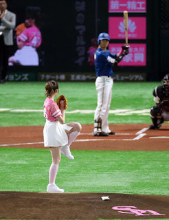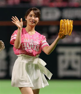 Even more missed pics and perhaps this is why she was chosen to be the co-host of that Baseball show. On May 13th Misa threw out the first pitch at a Fukuoka SoftBank Hawks game, she hails from the city of Oita which isn't too far away.