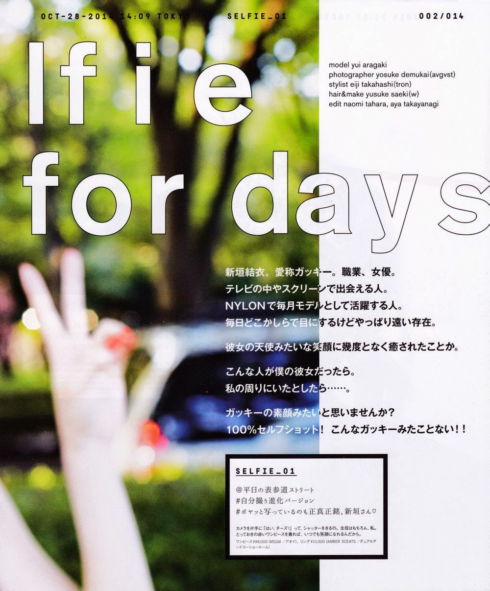 December issue of Nylon Japan, bit of a different kind of spread as it's a 'selfie'.